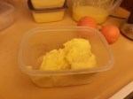 This week I was given fresh organic oranges. I spent quite a while juicing them in my Nutribullet. For Christmas and a belated birthday gift my husband and I bought ourselves a KitchenAid Stand Mixer with the ice cream attachment. I thought, “Why not try making a sorbet using some of this fresh orange juice?” I had some simple syrup with pineapple left that I made the last time I tried to make sorbet.  Success! My husband said it was good. I am very pleased that we have fresh sorbet with no chemicals. Unfortunately I had to use sugar, albeit, organic to make the simple syrup. Next time I will use agave nectar and give it a try.